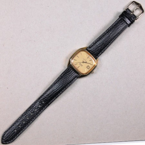 Montre à quartz analogique, Water resistant / étanche 30 m, SWISS MADE, boîtier doré en acier ..